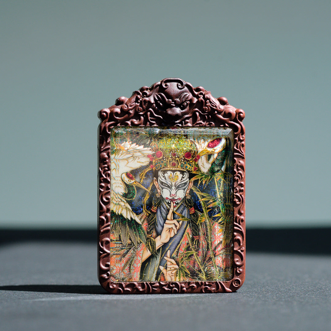 手绘点彩 公母貔貅枣木外壳 神龛吊坠唐卡
