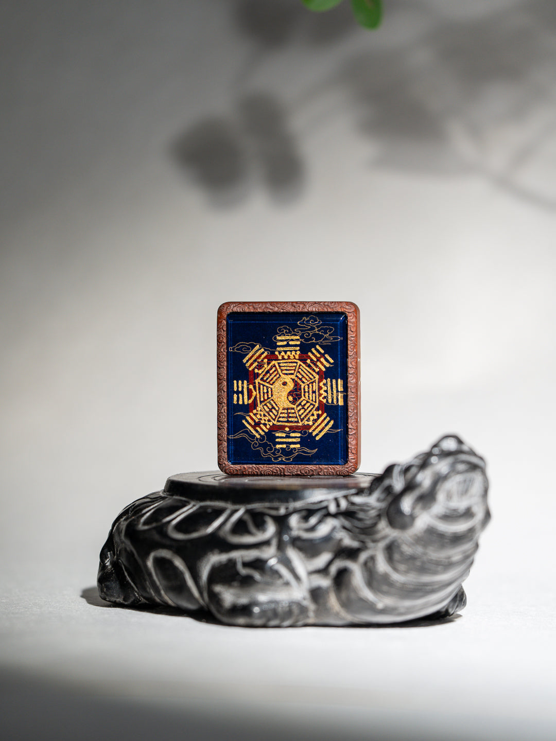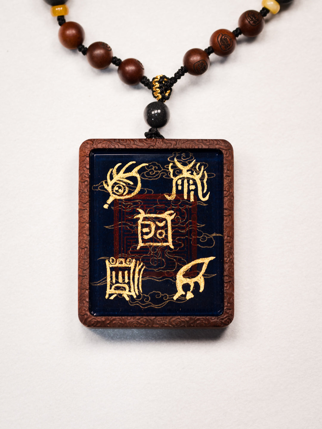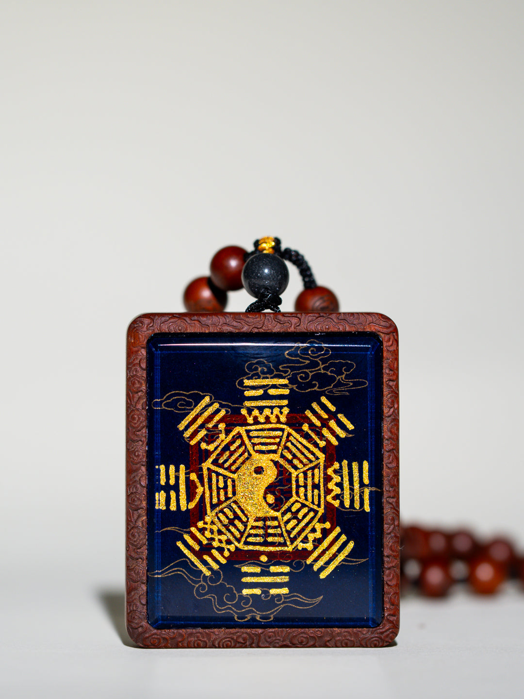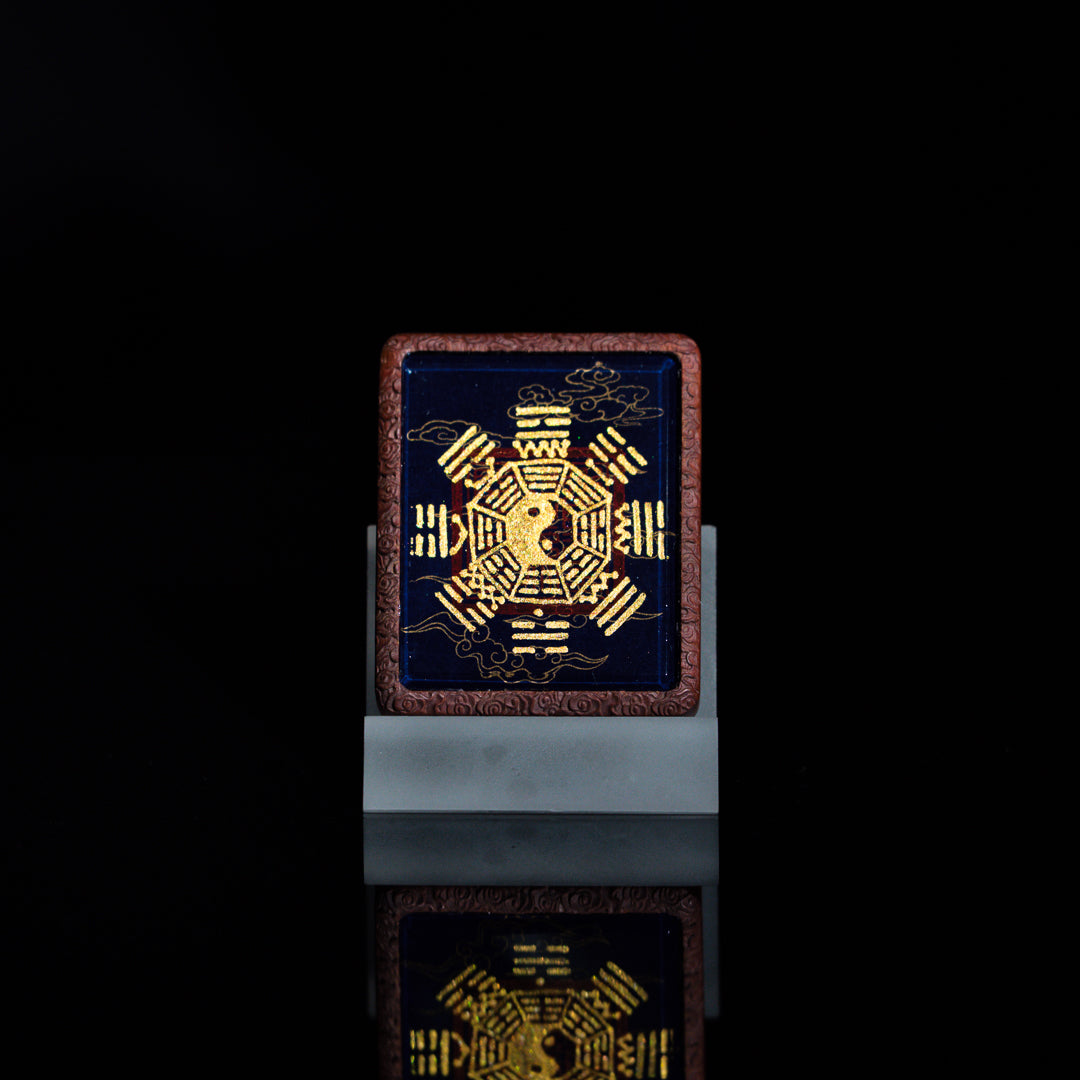 纯手绘五岳真形图+八卦枣木外壳吊坠唐卡