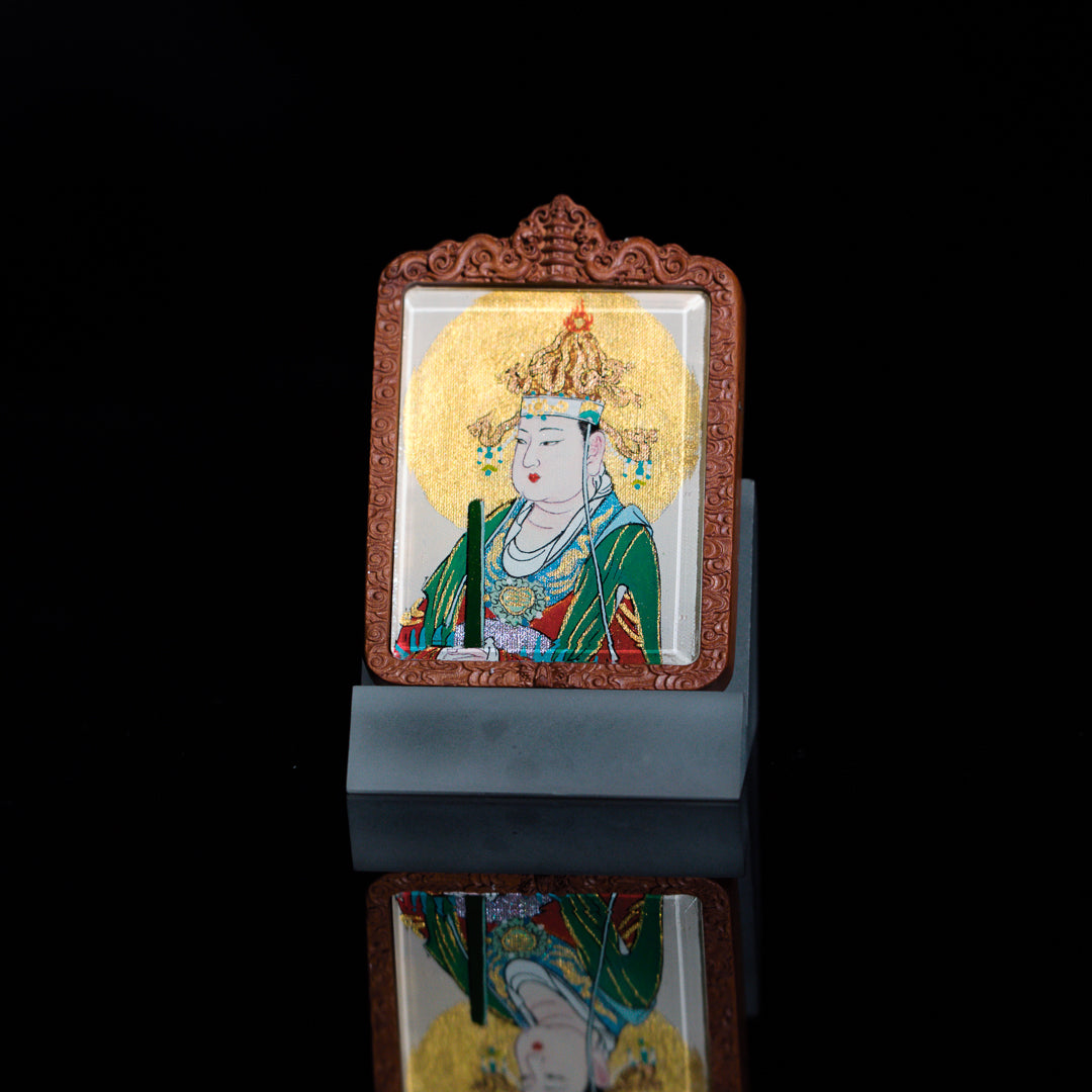 纯手绘(永乐宫)后土娘娘双面矿物颜料镶银枣木外壳神龛吊坠唐卡